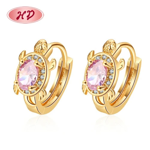 Bulk Costume Jewelry for Wolesale| 18k gold plated Sparkling Turtle Tortoise Huggie Earrings| Pink White Green Red Stone| Piercing Ear Tops for Women